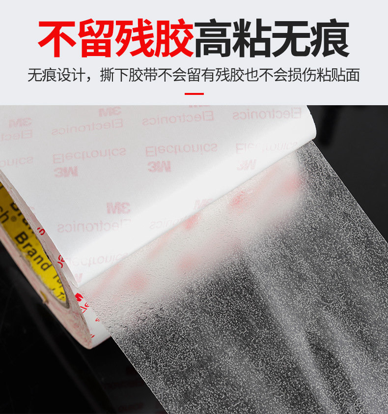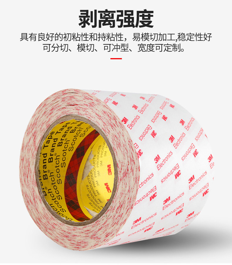 3M9448HK双面胶是一种无纺布基材双面胶,由无纺布双面涂层丙烯酸胶制成,具有良好的初始粘性和持粘性,稳定性好,易于模切,对塑料、橡胶、粗糙表面物体有友好的粘结性;耐高温性好,长期耐温80℃,短期耐温可达120℃;颜色分为白胶和黑胶。常用规格为:50M*1219mm**0.14mm。